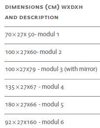 W 120, 160 cm H 120, 160, 200 cm D 40 cm