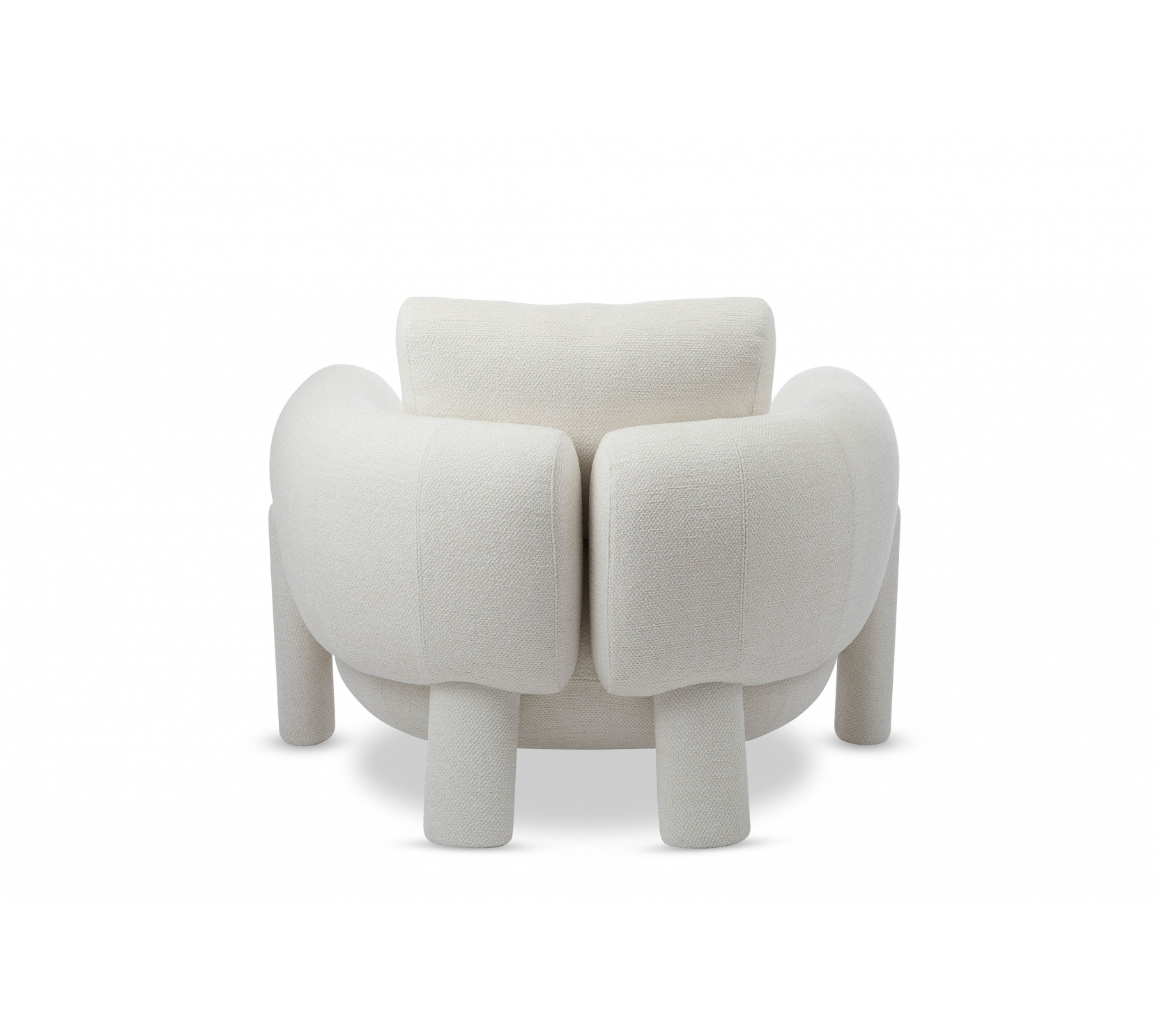 每一個角度皆為轉換:正面展現開放與迎接,背面收束自持,微微向內的線條,彷彿守護一方私密。側視之間,流動感悄然浮現。