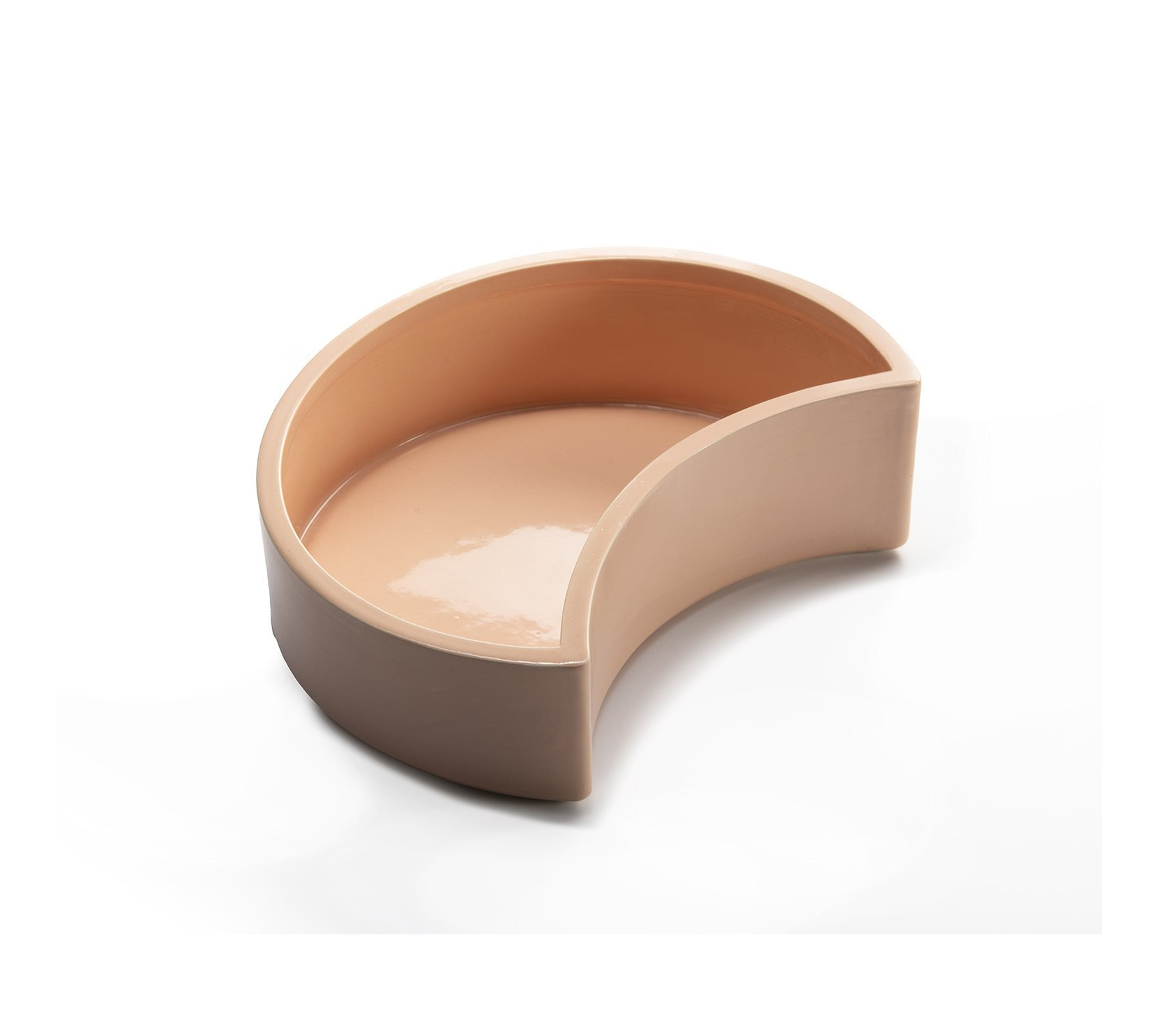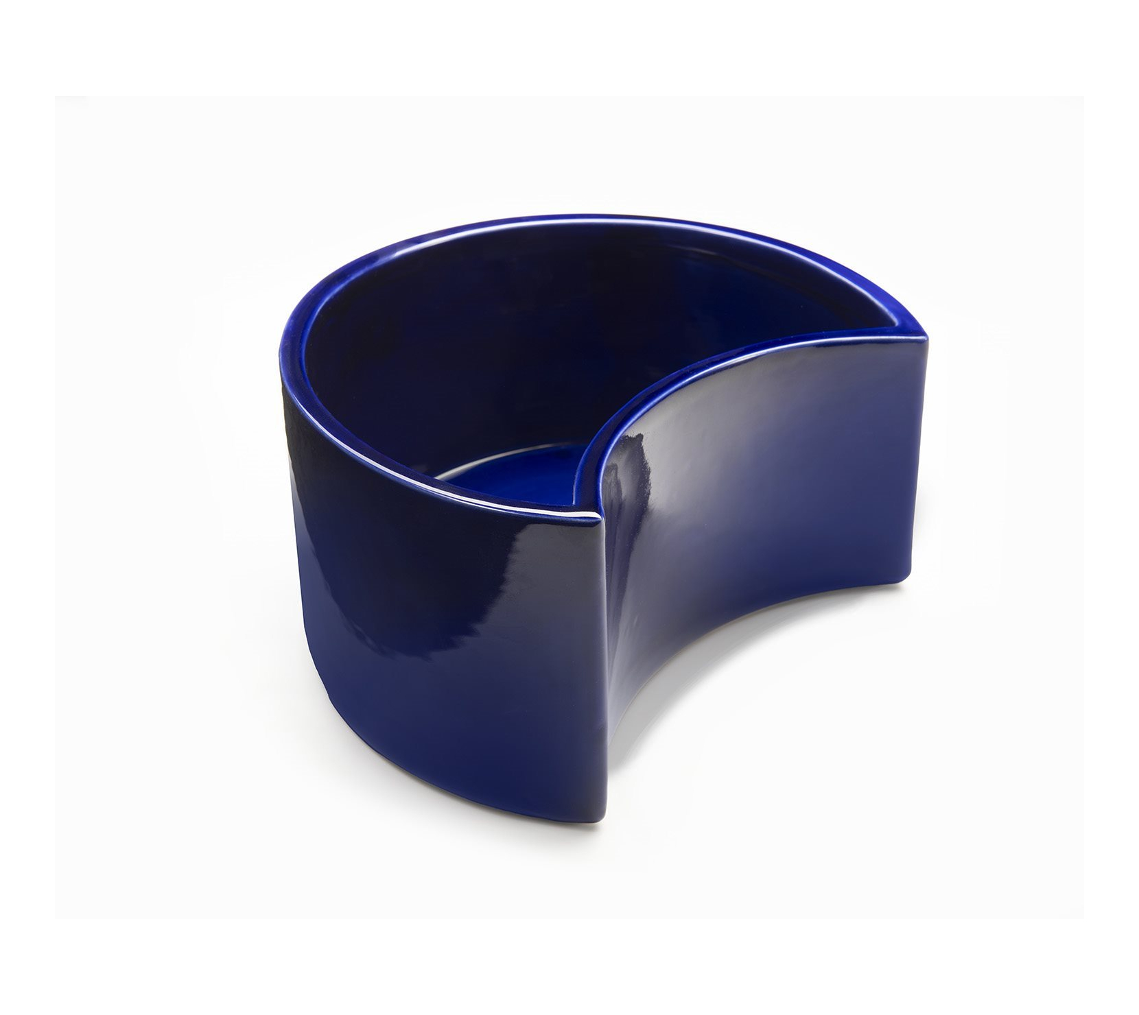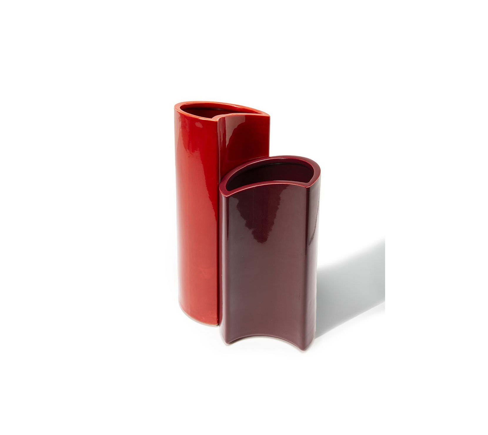 陶瓶選用拋光上釉陶土燒製,提供粉、深藍、紅與酒紅四色,飽和色塊在光線下映出柔潤釉感,既具雕塑性,又能獨立成景。