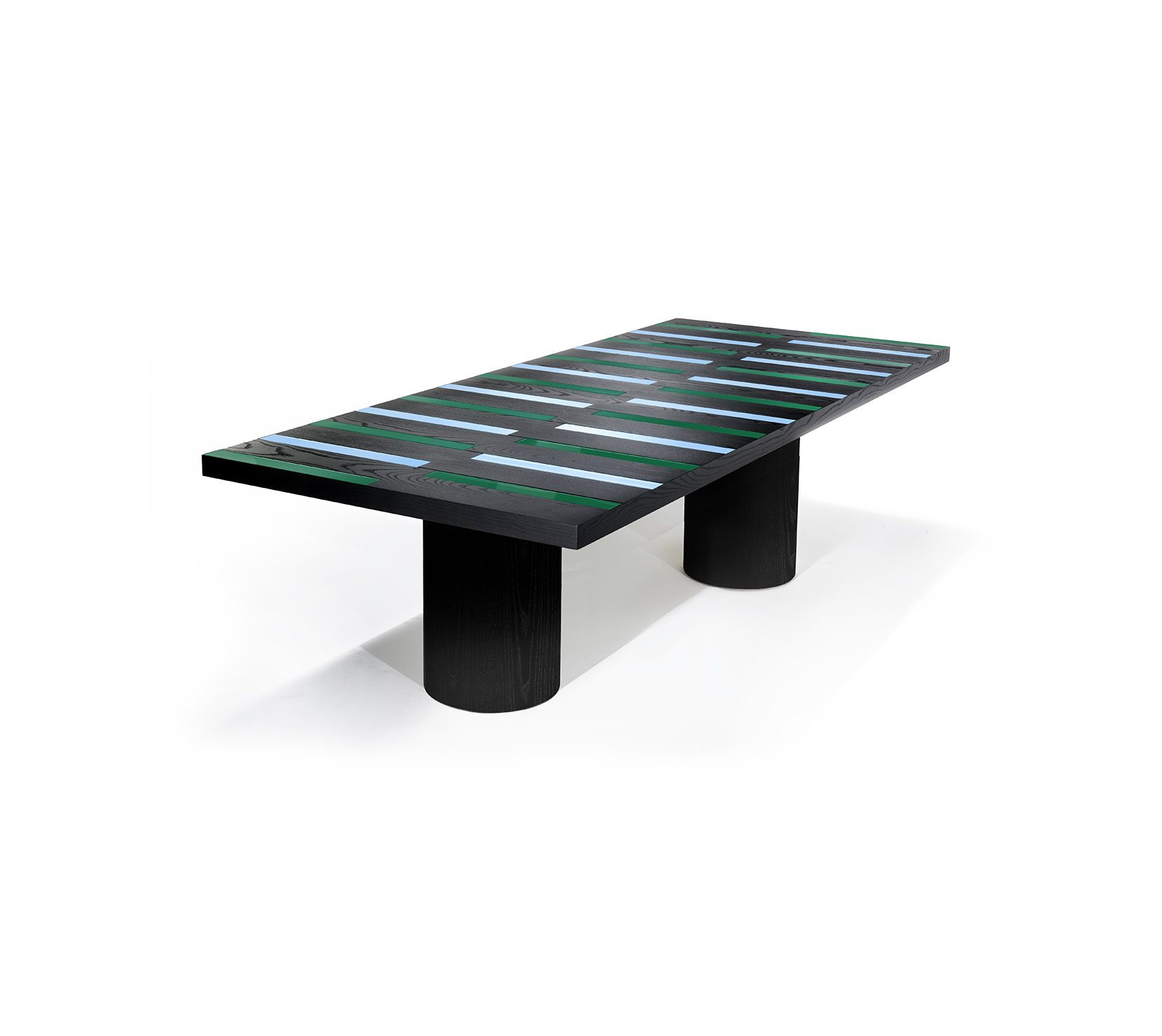 Riga-Riga 以幾何構圖為語彙,將設計語言與木工鑲嵌工藝交織,轉化為充滿節奏的裝飾表面。