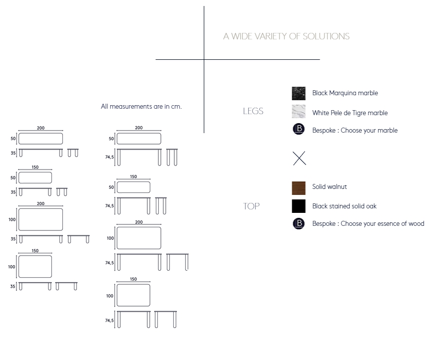 Sunday有著各種各樣的尺寸以及兩款不同的大理石腳高度,彈性化的尺寸安排輕易符合居家空間內的不同需求,無論是需要一張小咖啡桌、大咖啡桌,甚至是讓10位客人假日愉悅用餐的大餐桌,都能完美地適應室內空間。