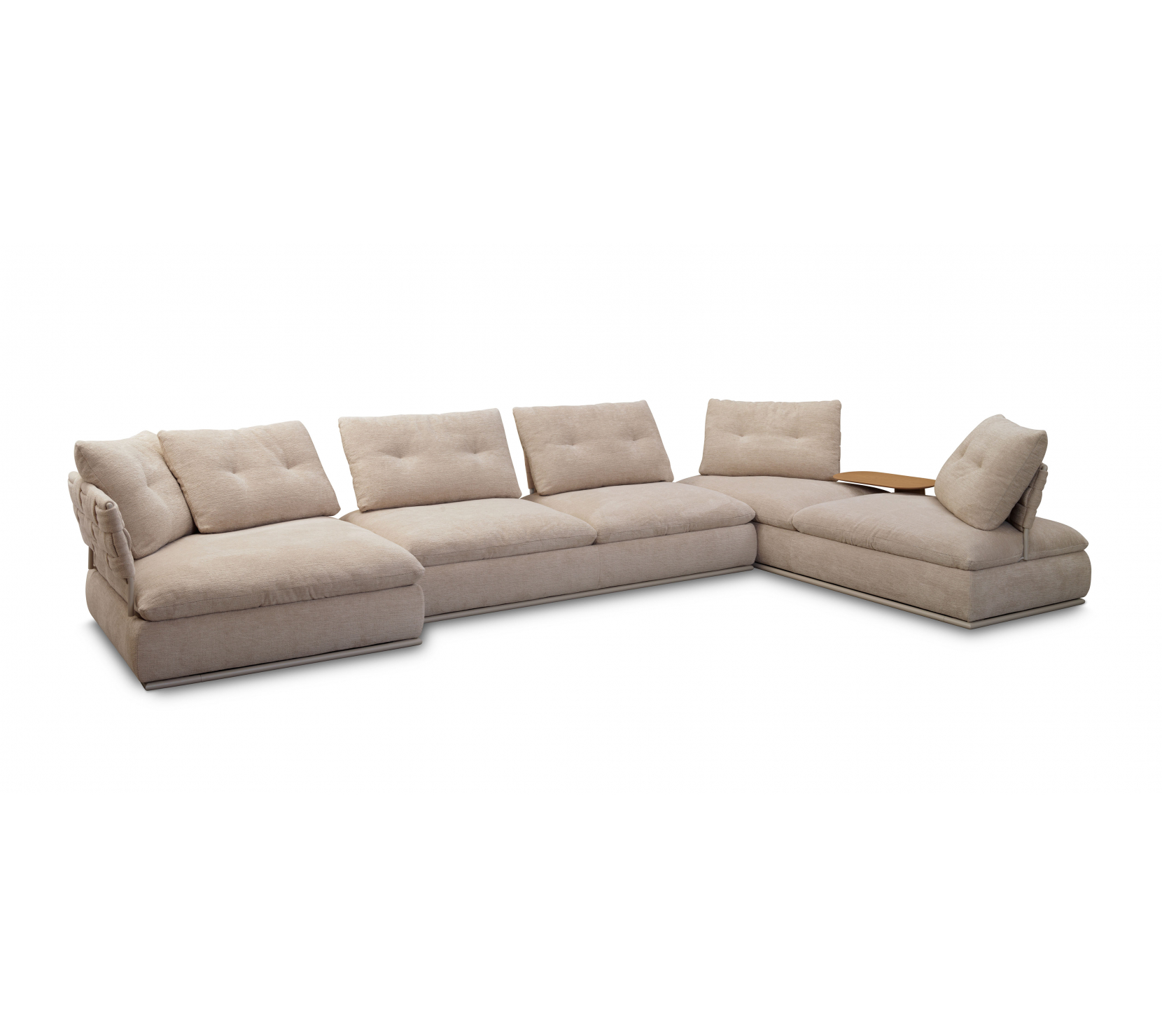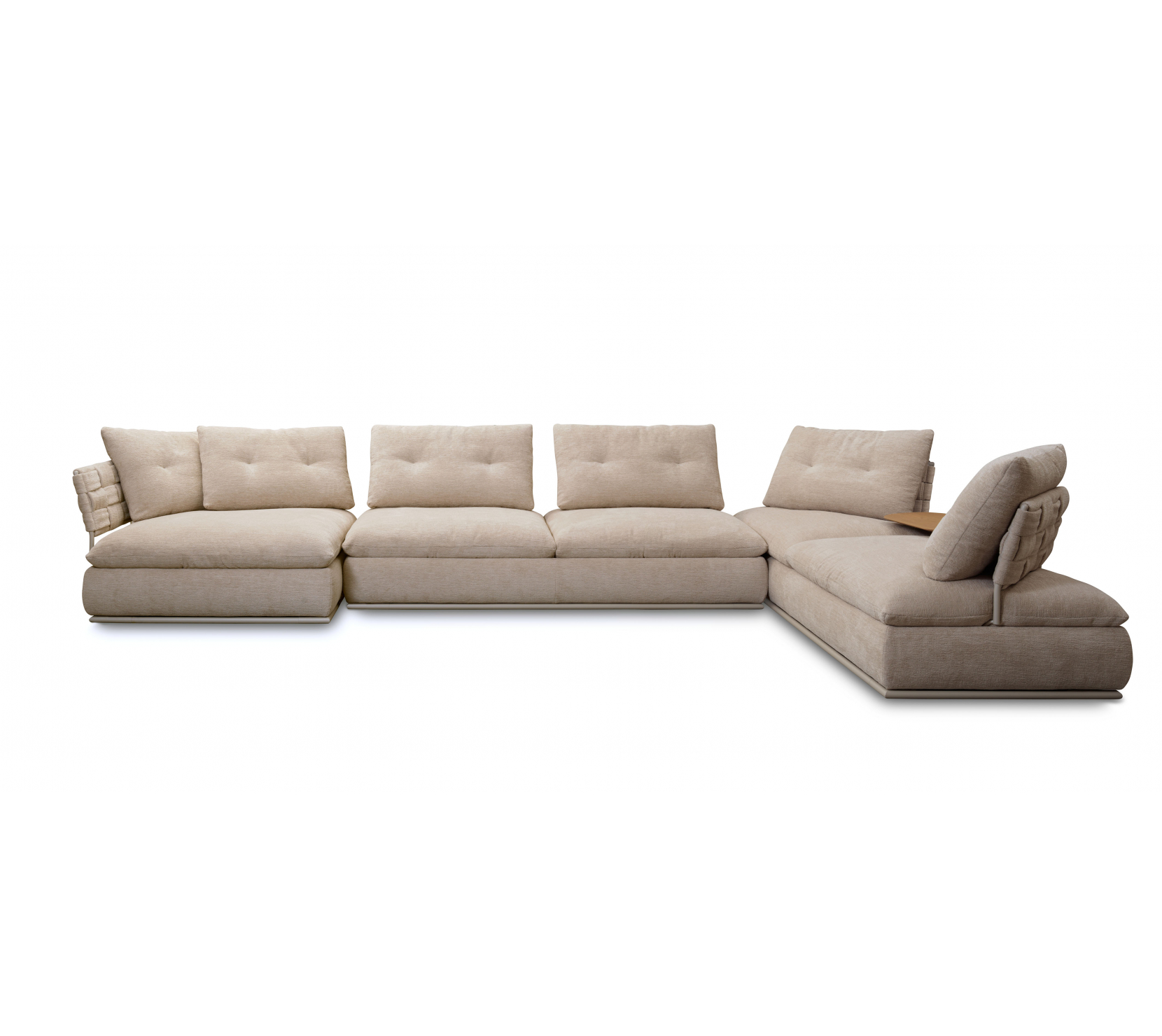 回到地面、回到被包覆與安放的感受,是 Land 的設計起點。寬厚坐墊置於金屬底座之上,輪廓低伏卻不失張力,背靠以明確的結構語言延伸,結合精緻的縫製細節,展現出柔與剛的交錯。