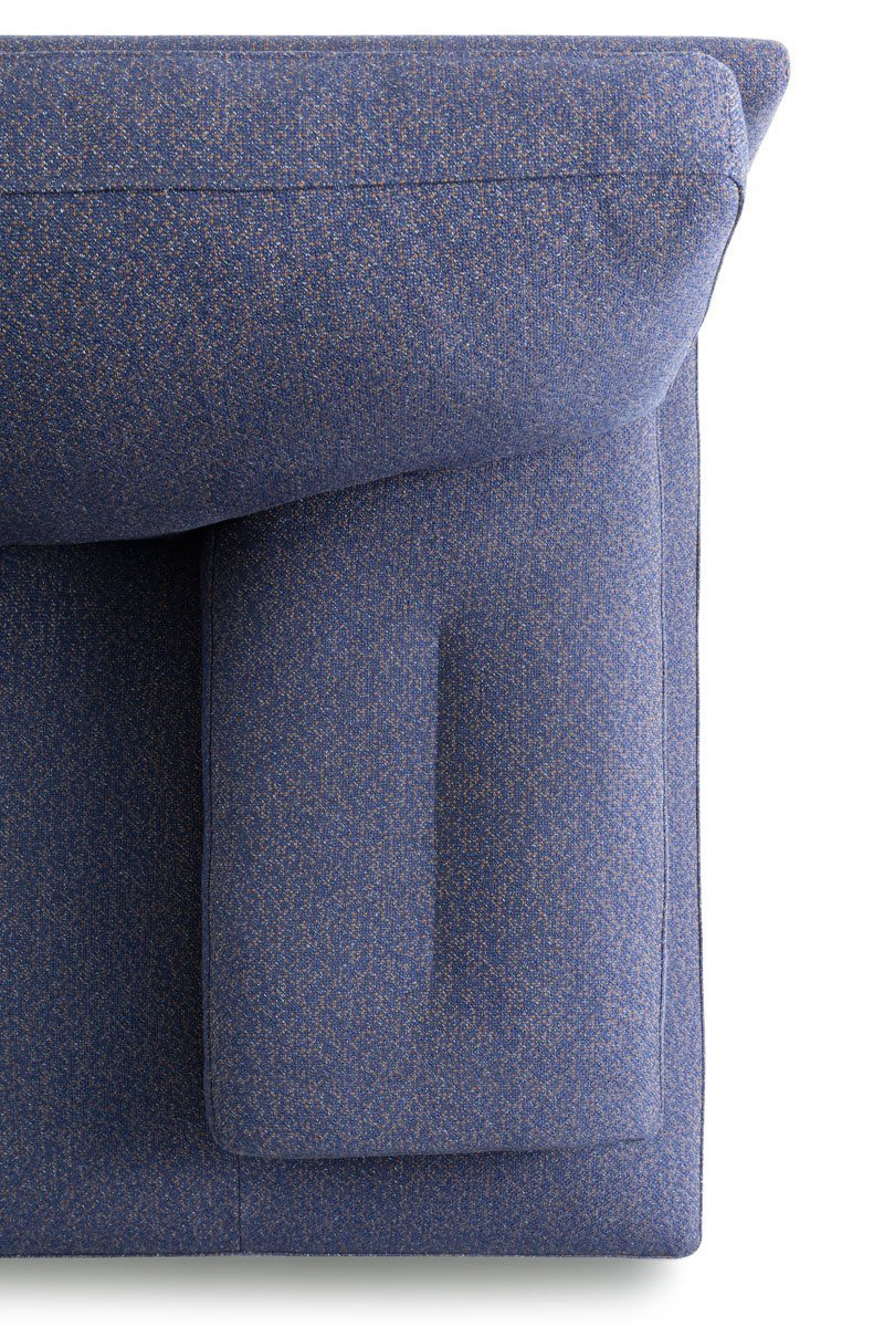 這款沙發以質樸形制和極為理性的比例而獨樹一幟。平行縫線將寬大椅座劃分為垂直條幅,矩形軟墊隨性當作靠背和扶手。