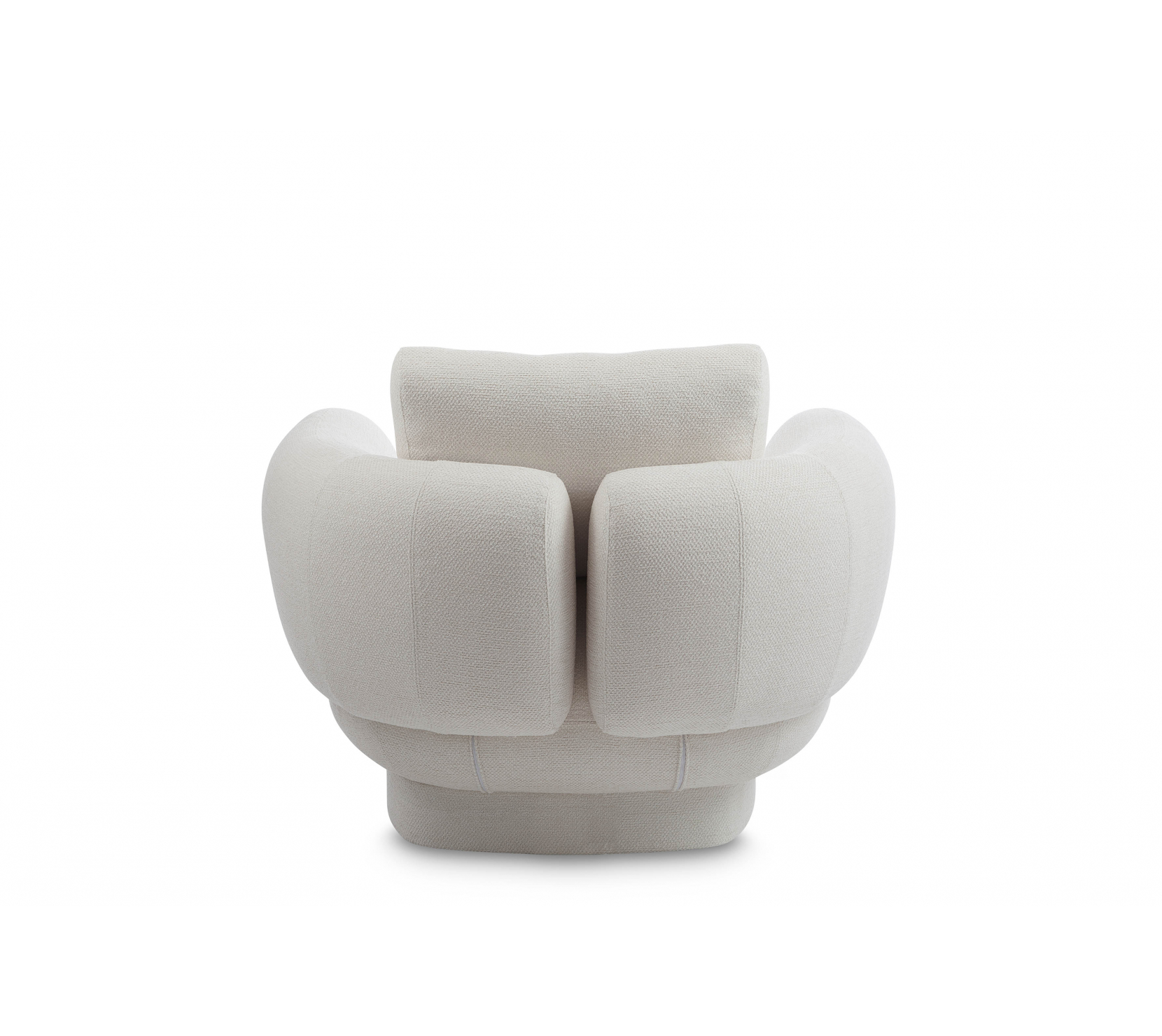 每一個角度皆為轉換:正面展現開放與迎接,背面收束自持,微微向內的線條,彷彿守護一方私密。側視之間,流動感悄然浮現。