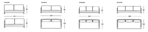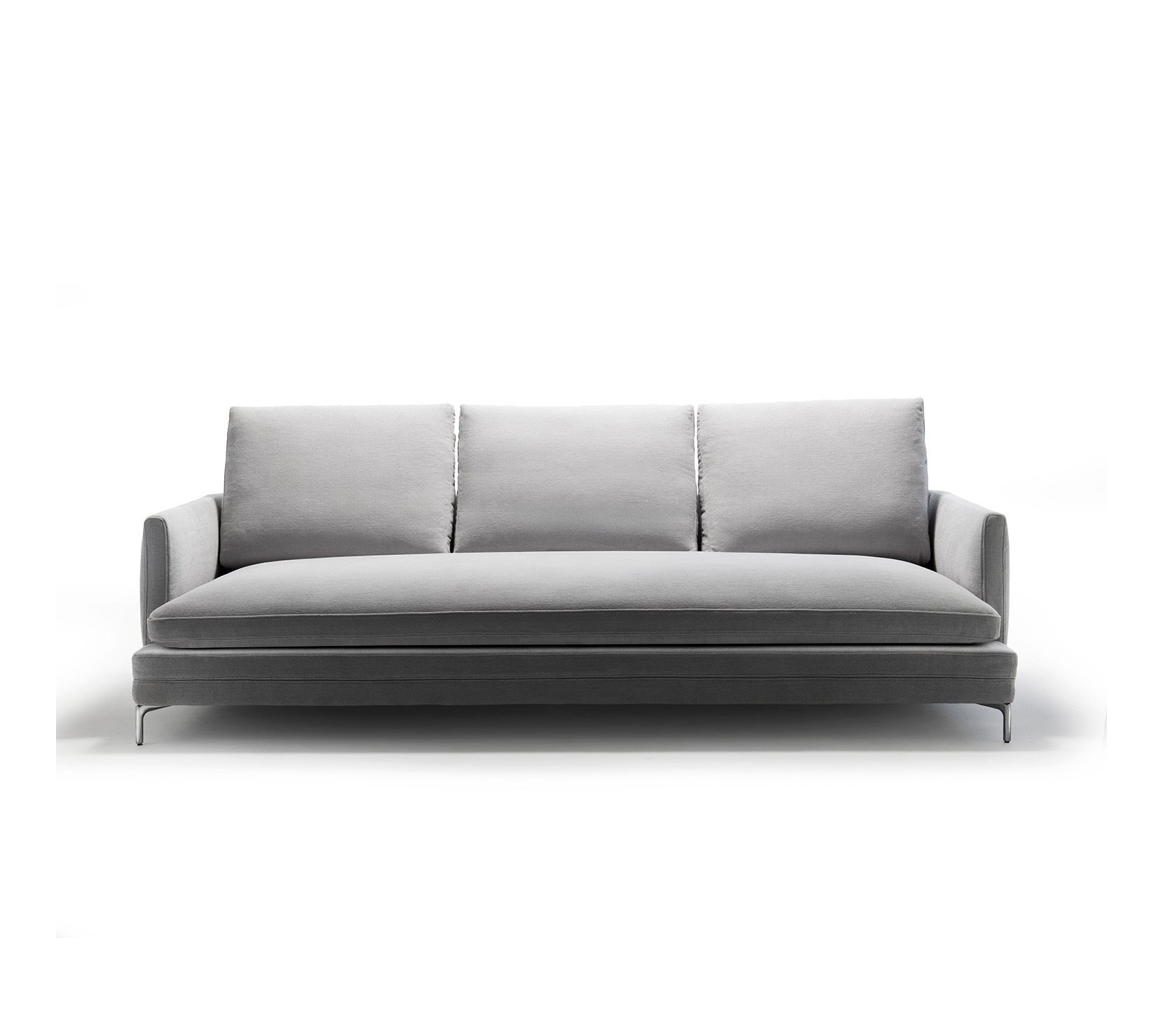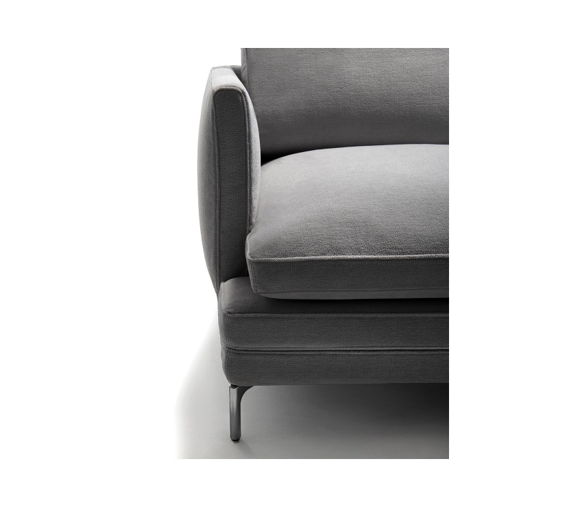 鋼製骨架搭配彈性織帶支撐,座面採漸層密度聚氨酯與熱合聚酯纖維層疊填充,背與扶手以自熄性聚氨酯包覆。