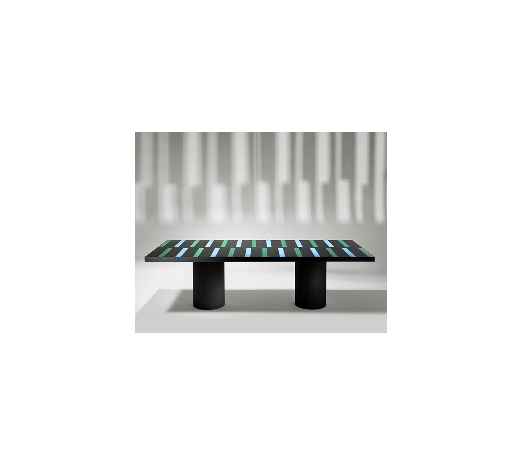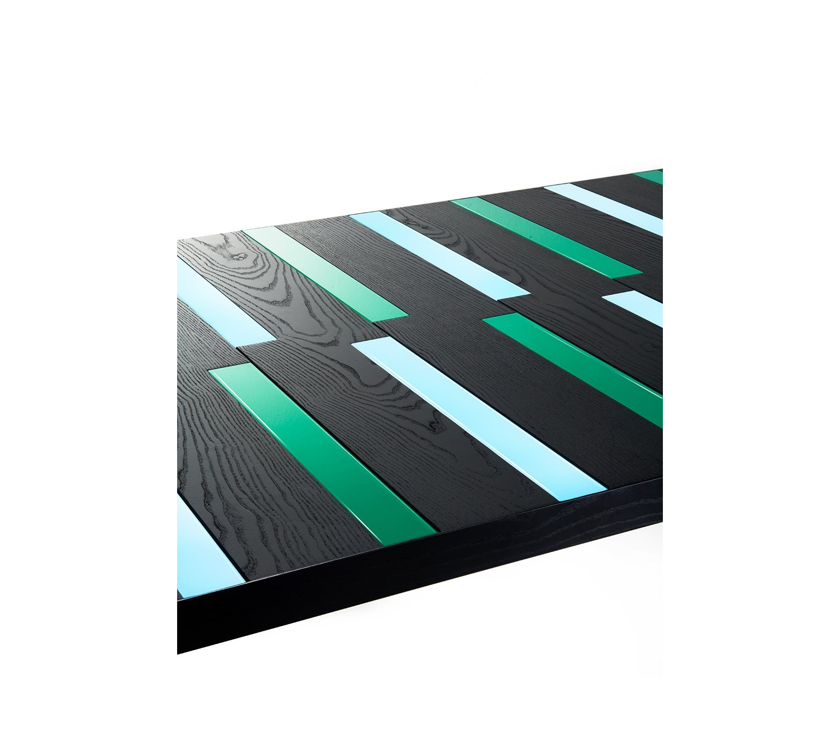 Riga-Riga 以幾何構圖為語彙,將設計語言與木工鑲嵌工藝交織,轉化為充滿節奏的裝飾表面。