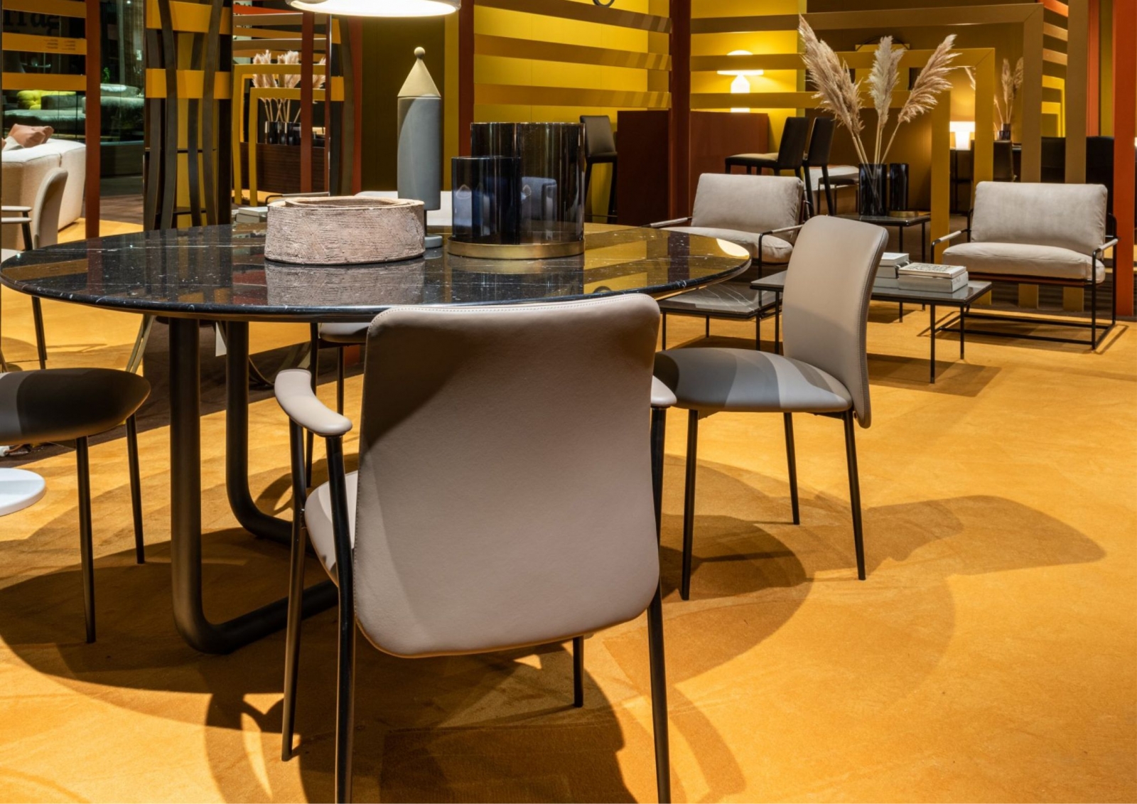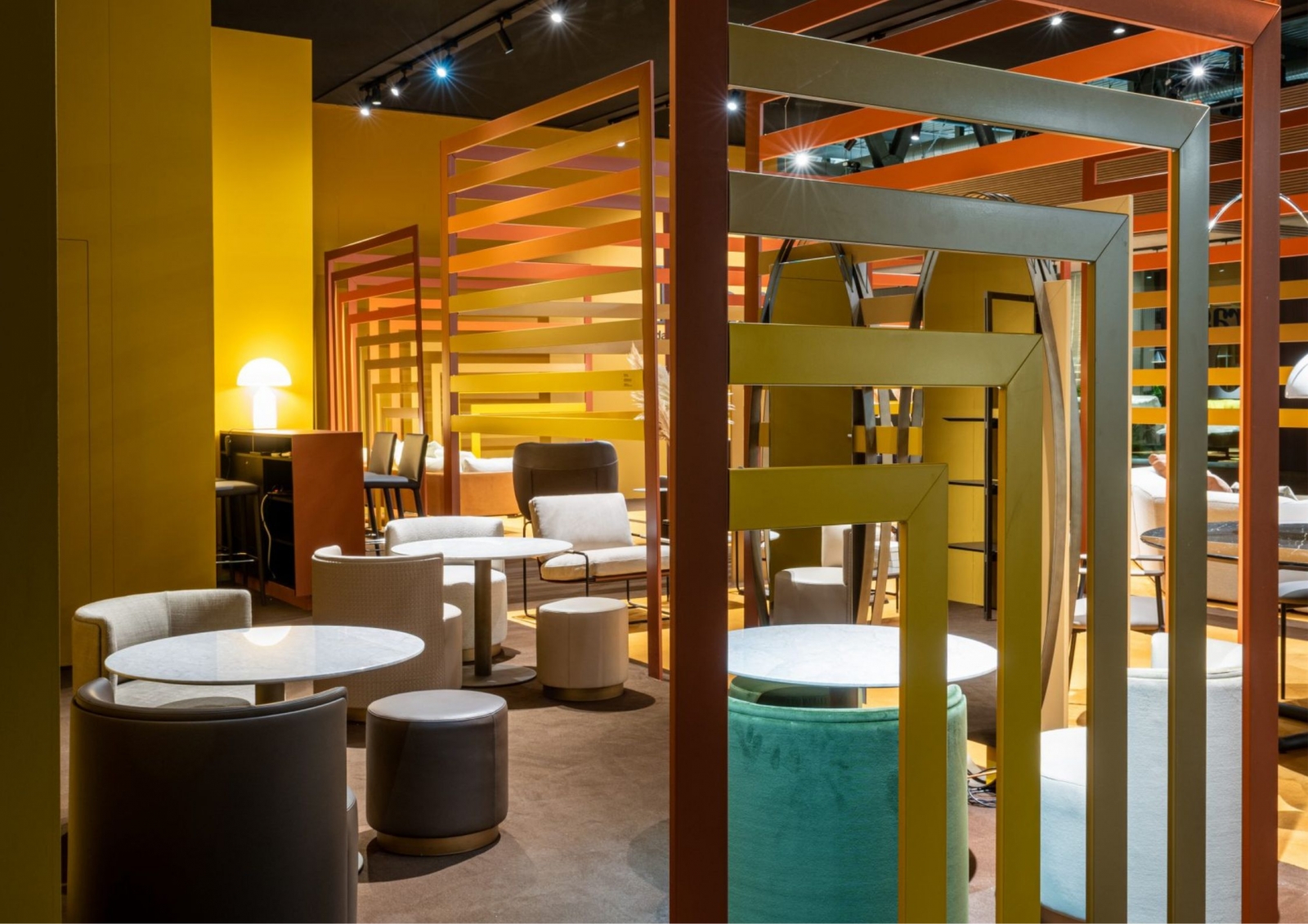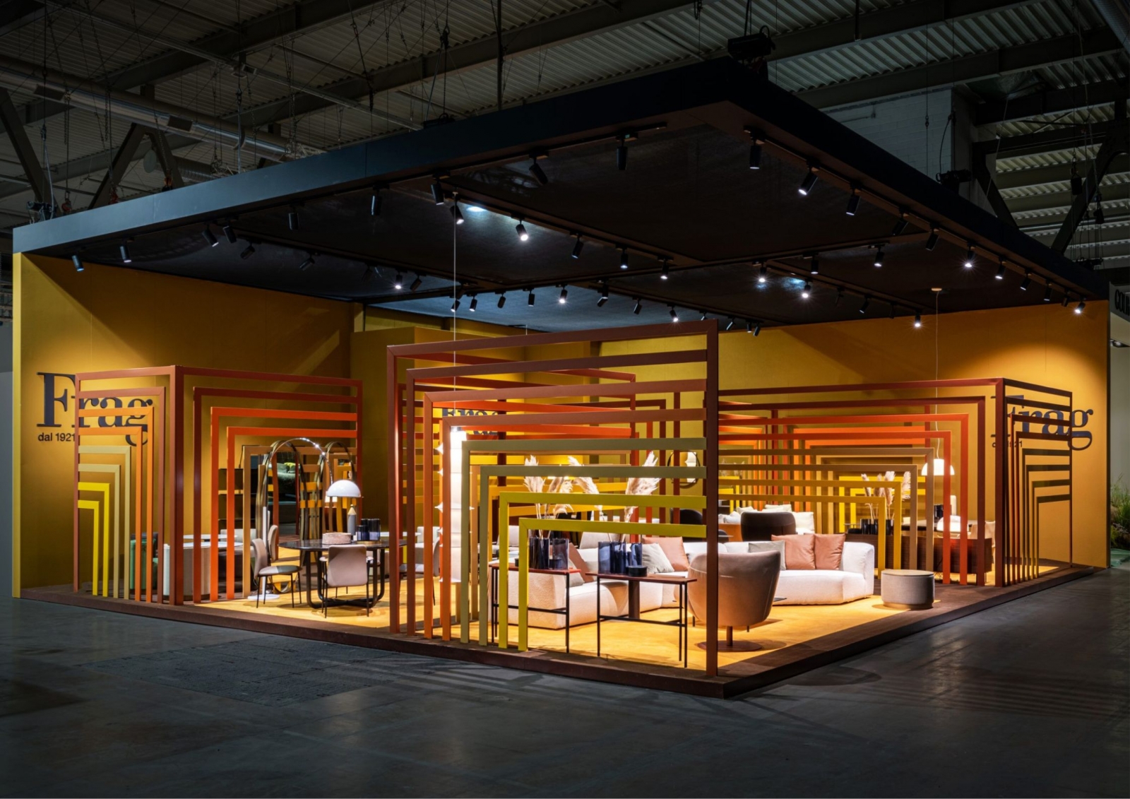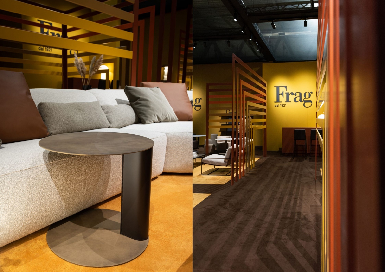 Frag在2022年米蘭傢俱展60週年慶典裡,向此次朝聖的參與者們,展示了客廳、用餐區和睡眠區的全新傢俱單品。藉此,展現品牌對於生活方式的定義與詮釋。Frag的展台設計由義大利知名設計師Ferruccio Laviani進行主導,設計師採用透視、透明和複雜的色彩,藉由幾何設計,展現Frag的世界。 展間的顏色靈感源自於皮革和獸皮,這是Frag公司生產的標誌。